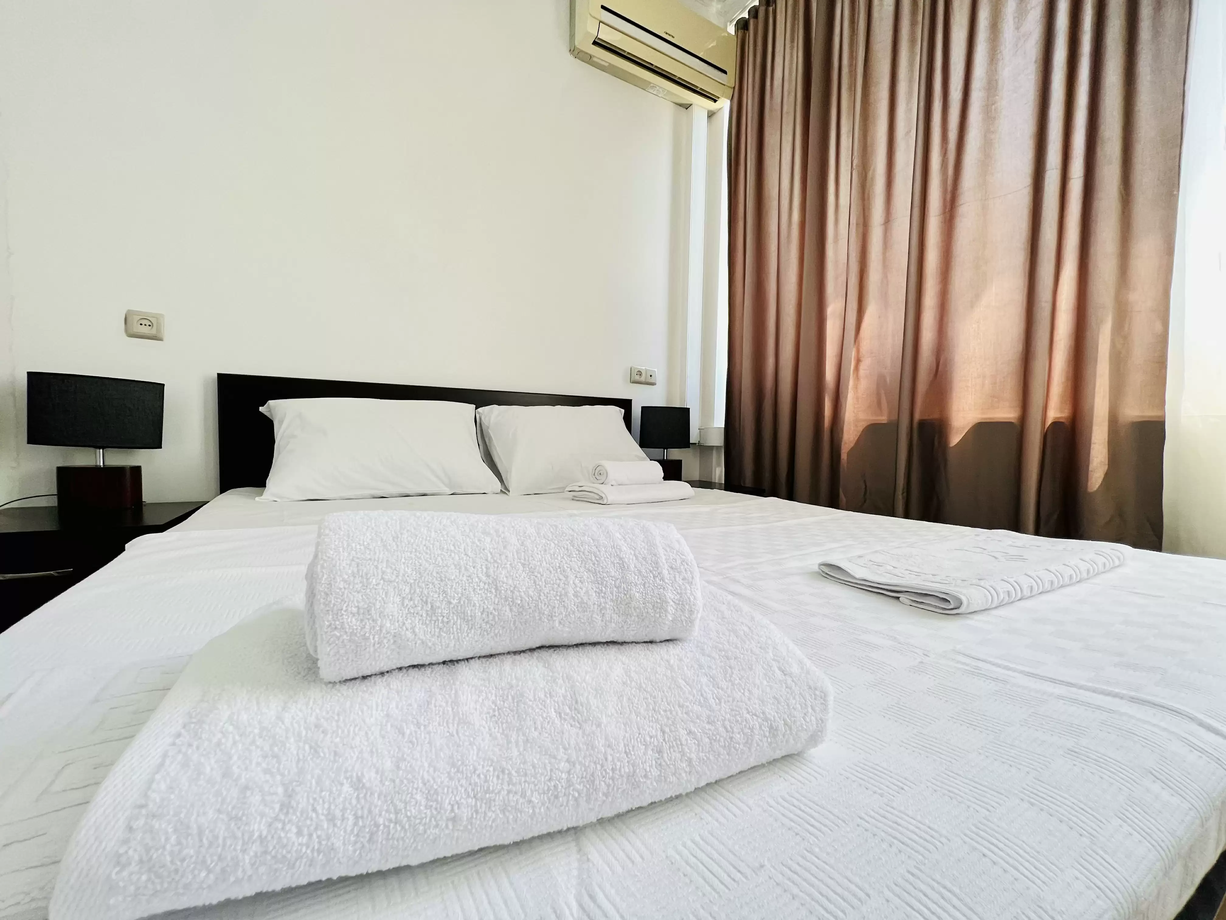 Our rooms feature air conditioning, modern bathrooms, smart televisions, spacious balconies, and comfortable double beds. Additionally, we provide free Wi-Fi access in the rooms. On the hotel premises, you will find many amenities, including room service, cafes with terrace seating, and many other conveniences to make your stay as comfortable as possible.